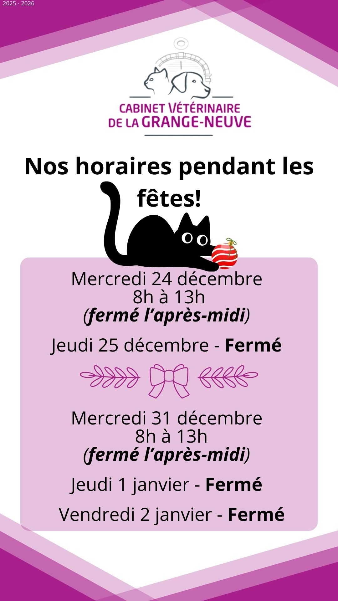 Horaires pendant les fêtes